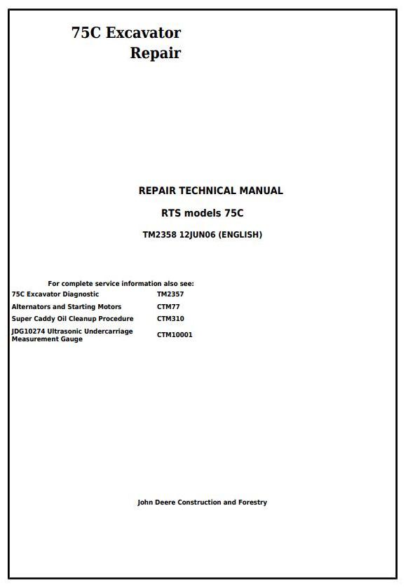 John Deere 75C RTS Excavator Repair Technical Manual TM2358