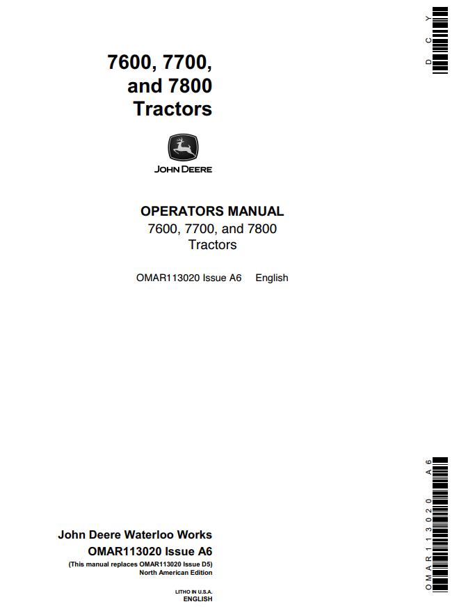 John Deere 7600 7700 7800 Operators Manual OMAR113020
