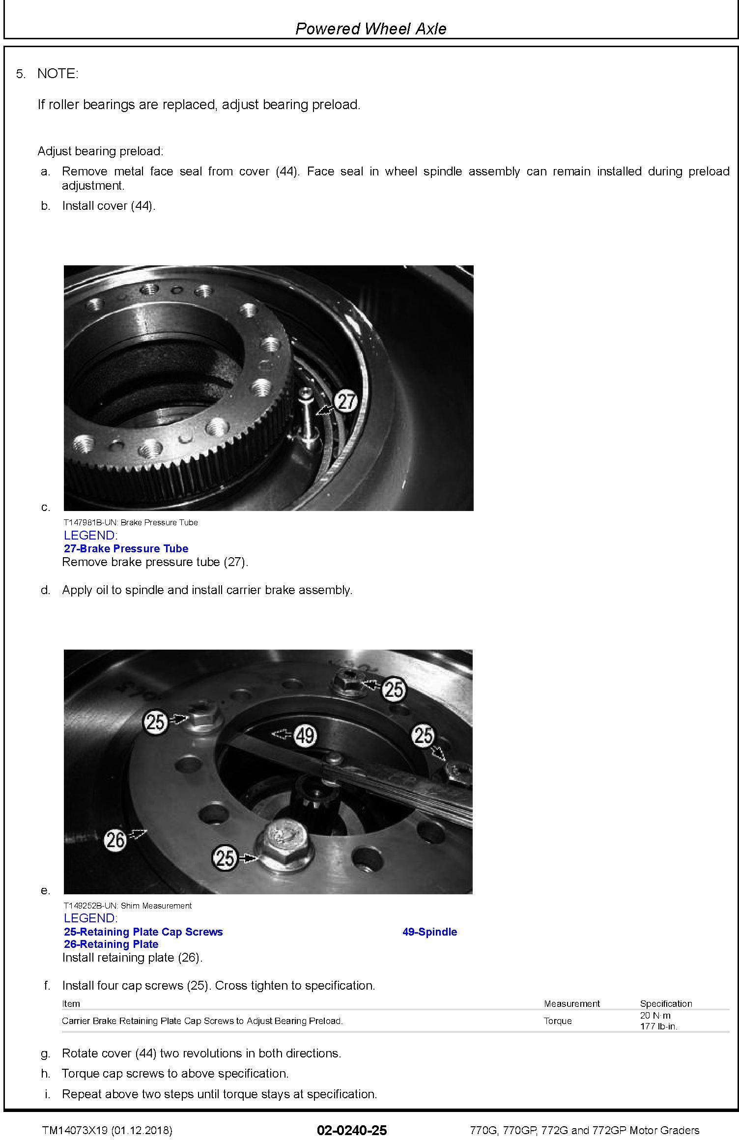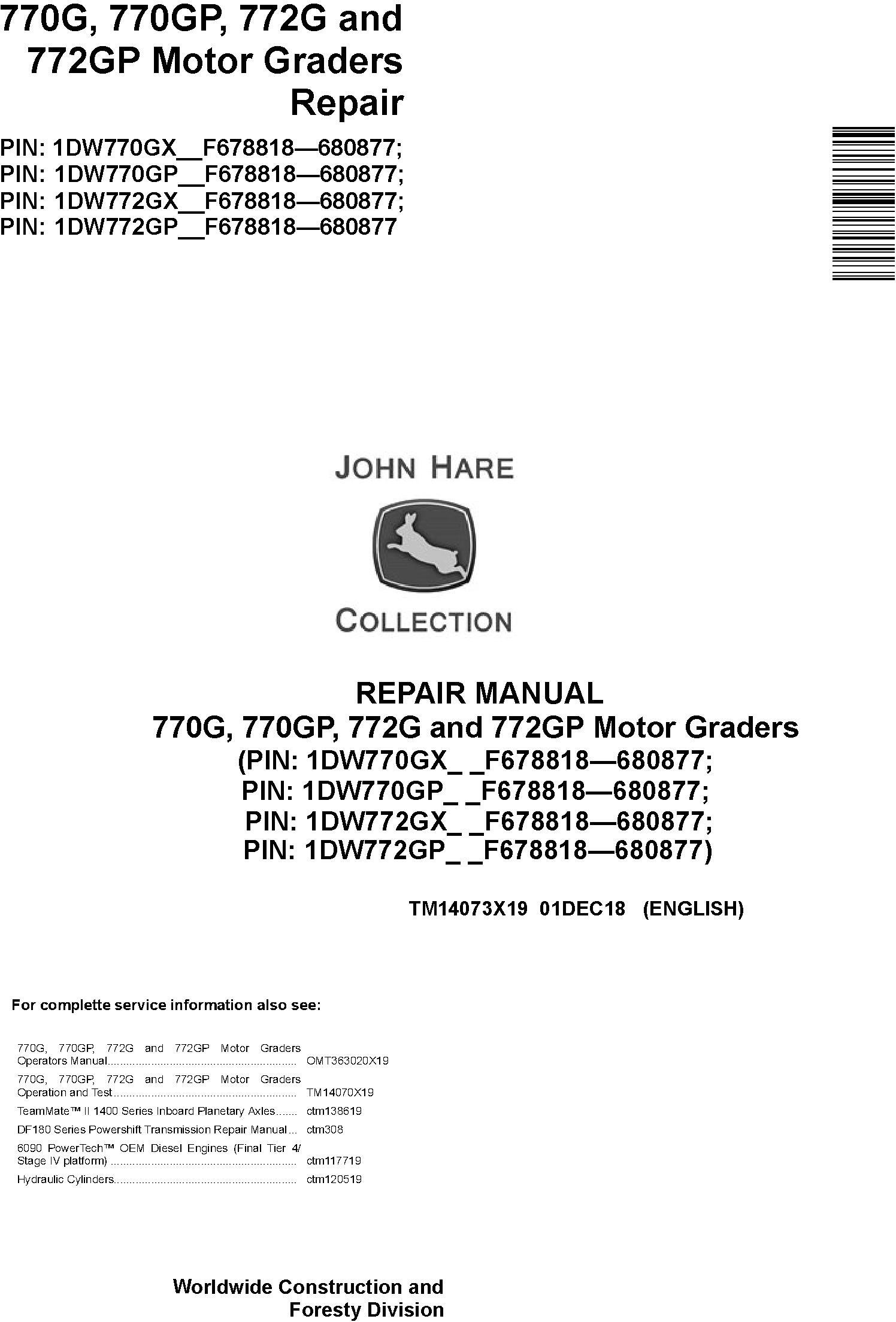 John Deere 770G 770GP 772G 772GP Motor Grader Repair Manual TM14073X19