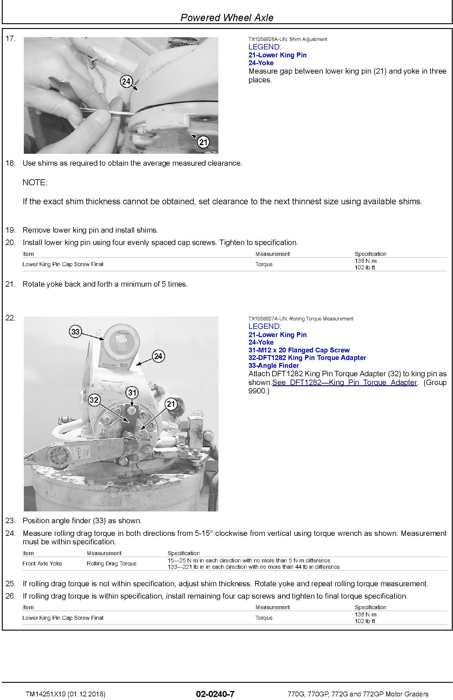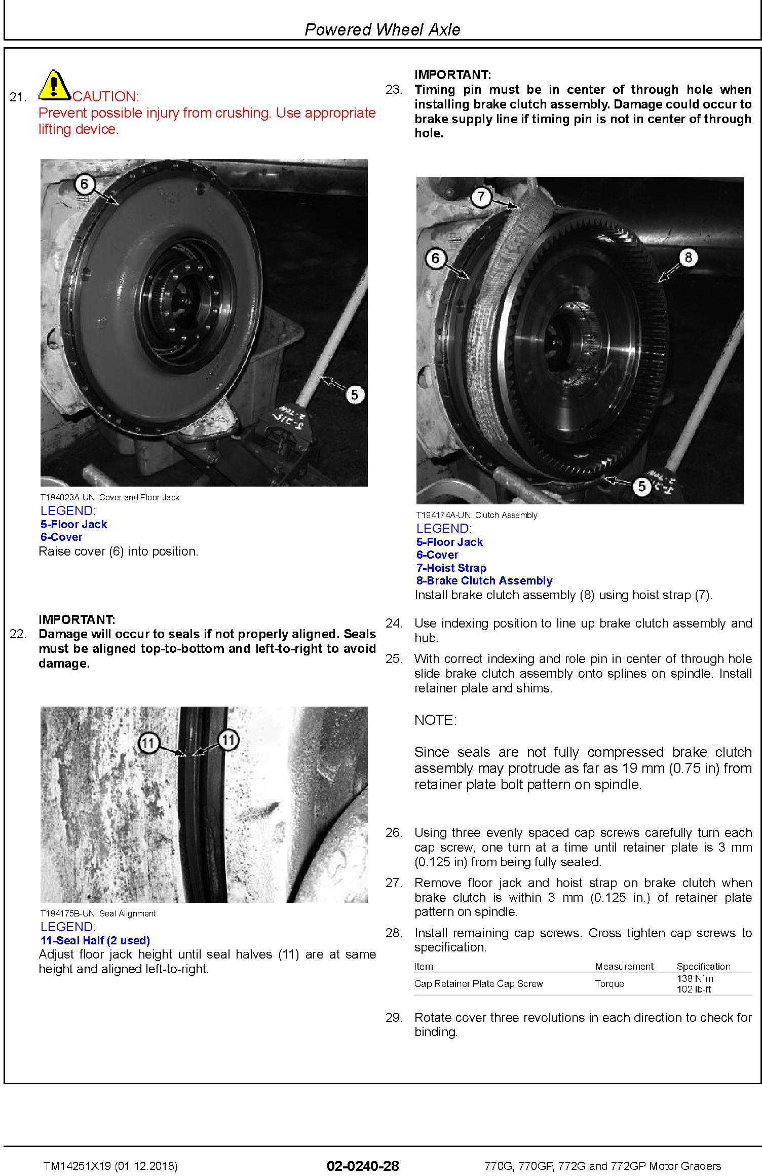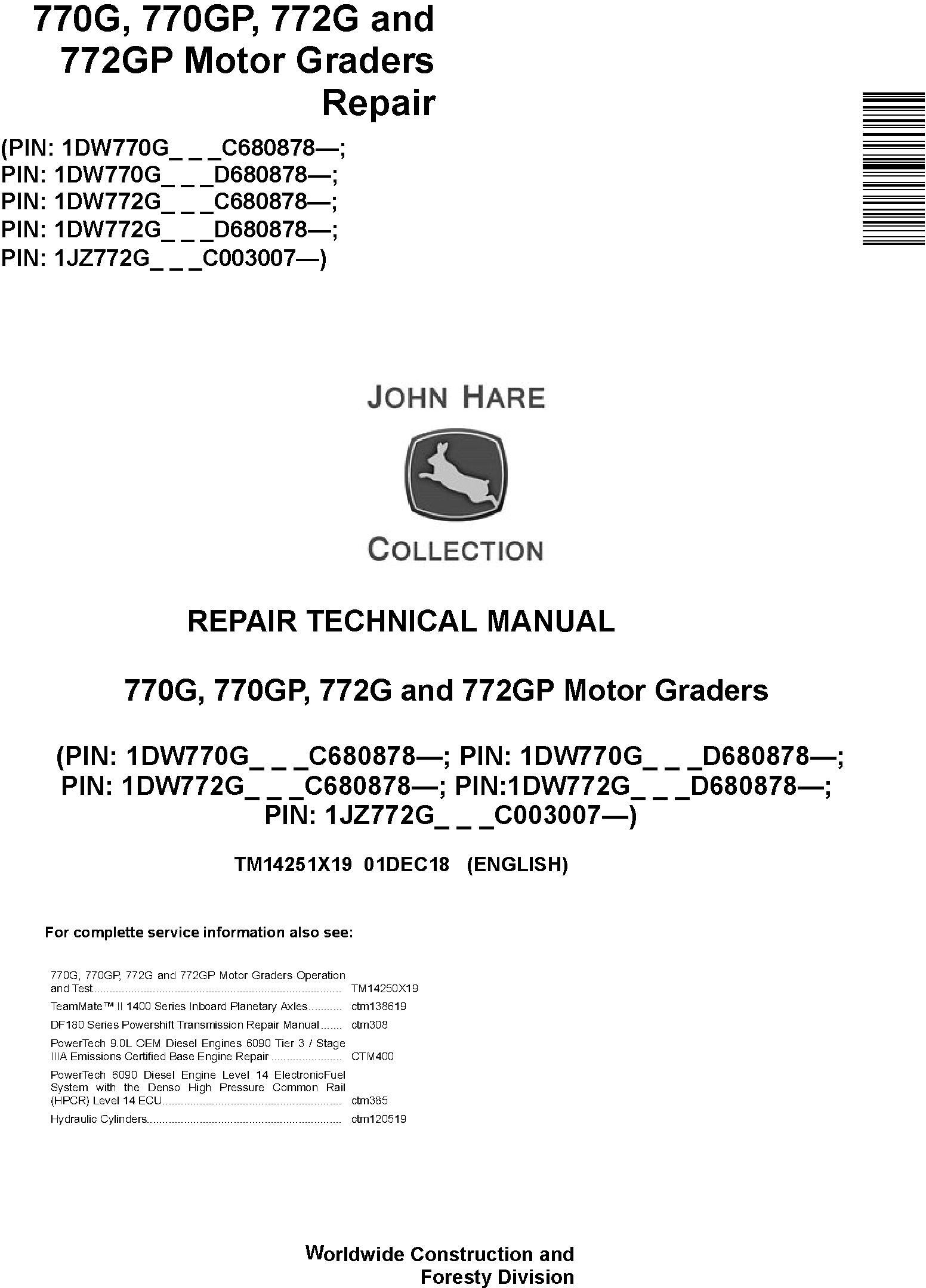 John Deere 770G 770GP 772G 772GP Motor Grader Repair Technical Manual TM14251X19