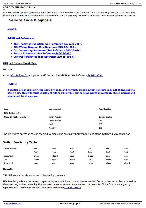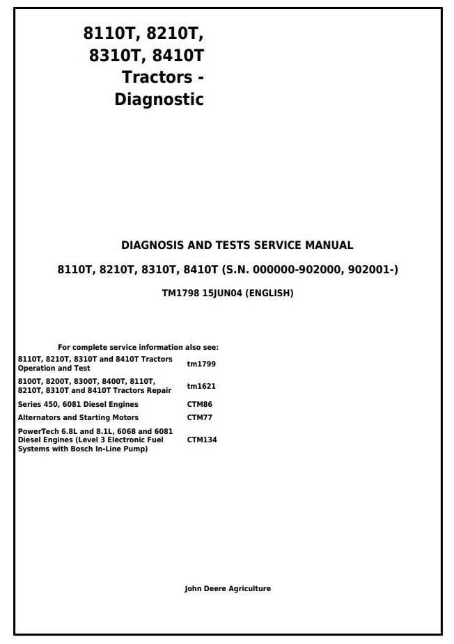 John Deere 8110T 8210T 8310T 8410T Tractor Diagnosis Test Service Manual TM1798