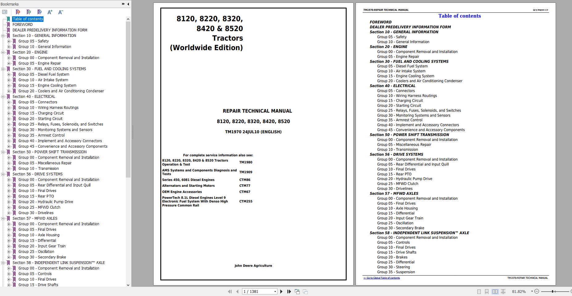 John Deere 8120 8220 8320 8420 8520 Repair Technical Manual TM1970