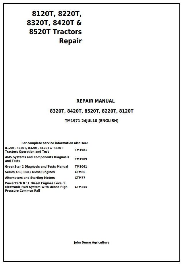 John Deere 8120T 8220T 8320T 8420T 8520T Tractor Repair Manual TM1971