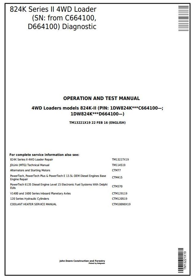 John Deere 824K Series II 4WD Loader Diagnostic Operation Test Manual TM13221X19