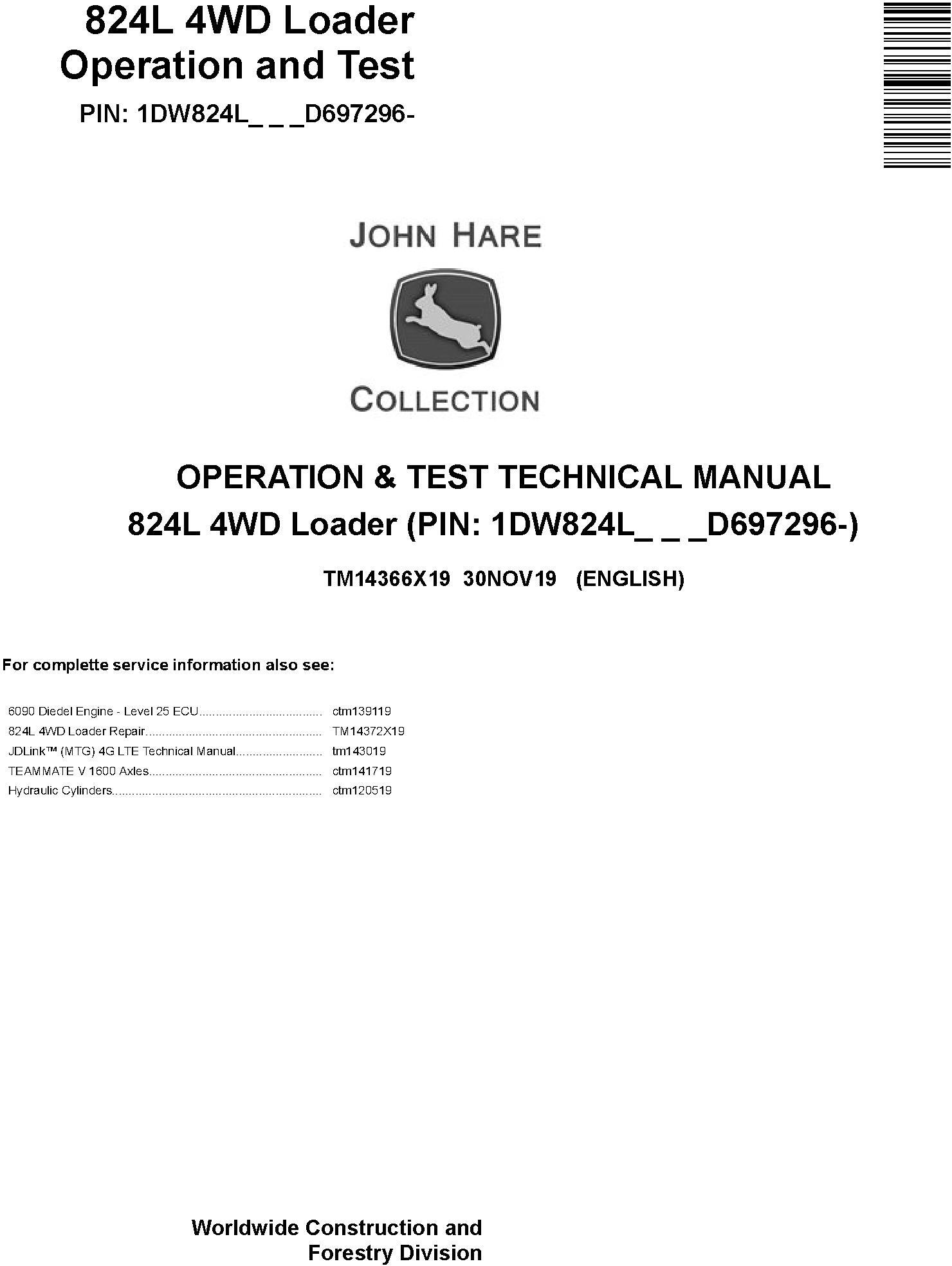 John Deere 824L 4WD Loader Operation Test Technical Manual TM14366X19