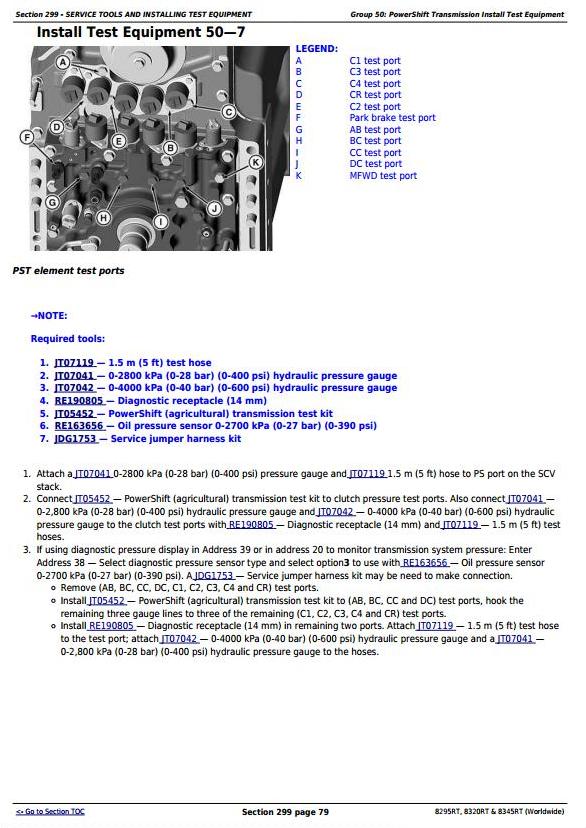 John Deere 8295RT 8320RT 8345RT Worldwide Tractor Diagnosis Test Service Manual TM104419