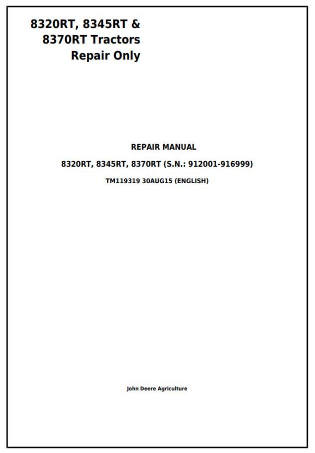John Deere 8320RT 8345RT 8370RT 8RT RW Tractor Repair Manual TM119319