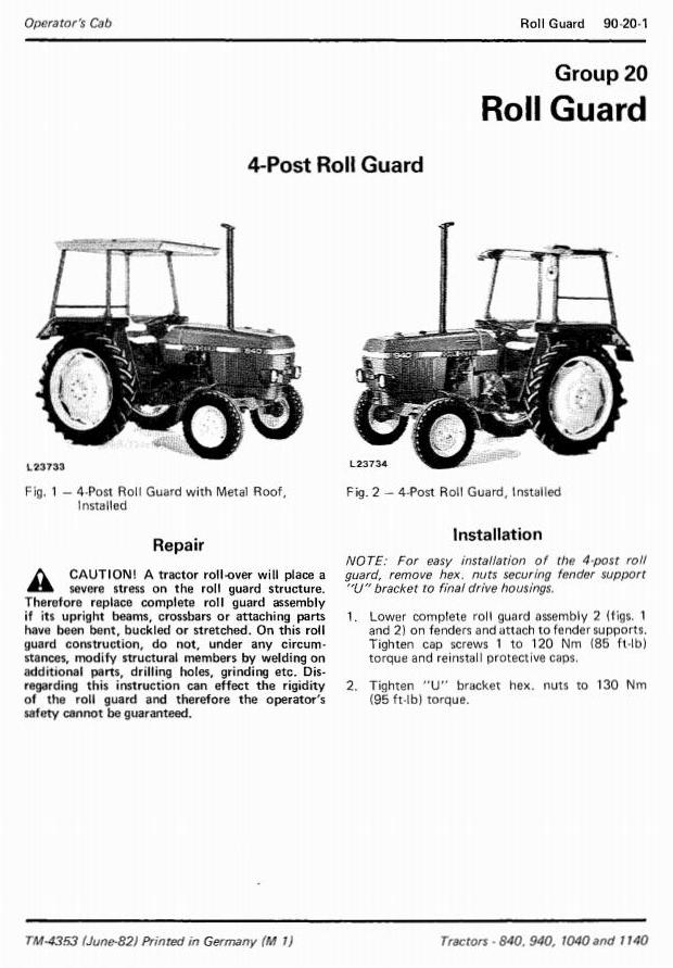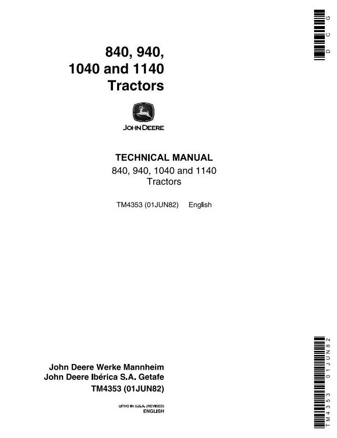 John Deere 840 940 1040 1140 Tractor Technical Manual TM4353