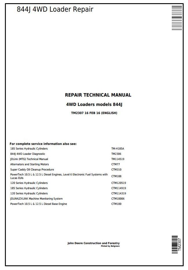 John Deere 844J 4WD Loader Repair Technical Manual TM2307