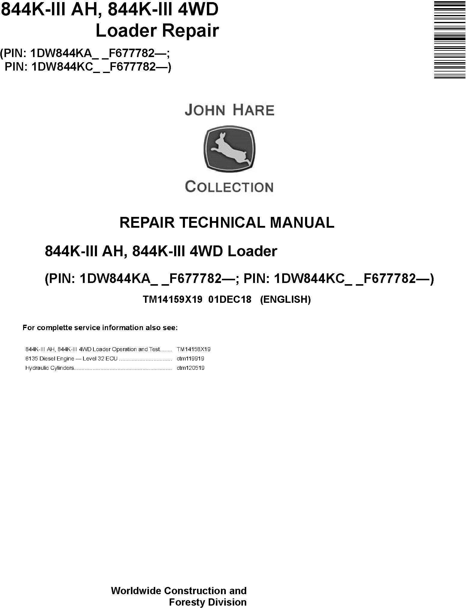 John Deere 844K-III AH 4WD Loader Repair Technical Manual TM14159X19