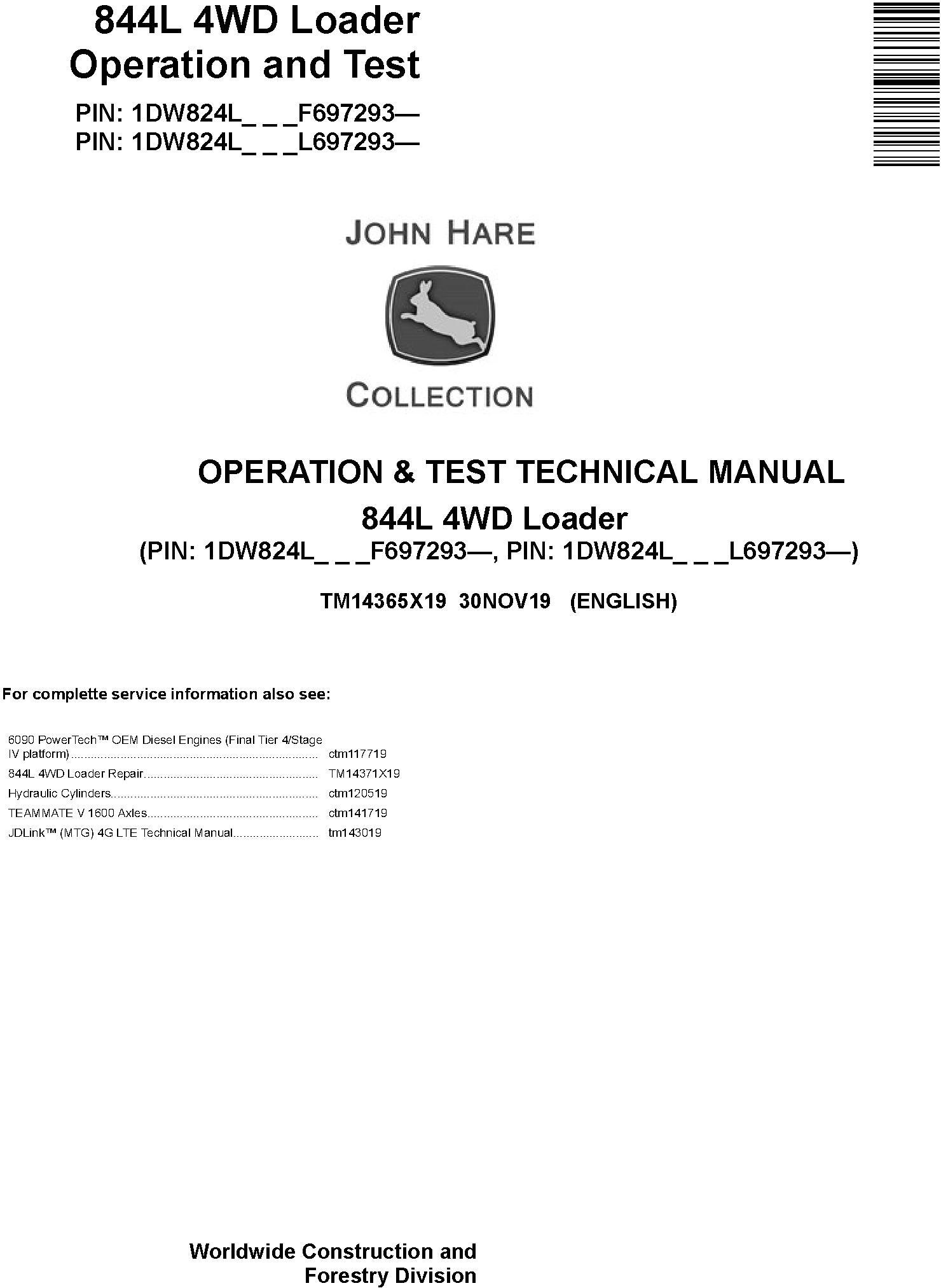 John Deere 844L 4WD Loader Operation Test Technical Manual TM14365X19