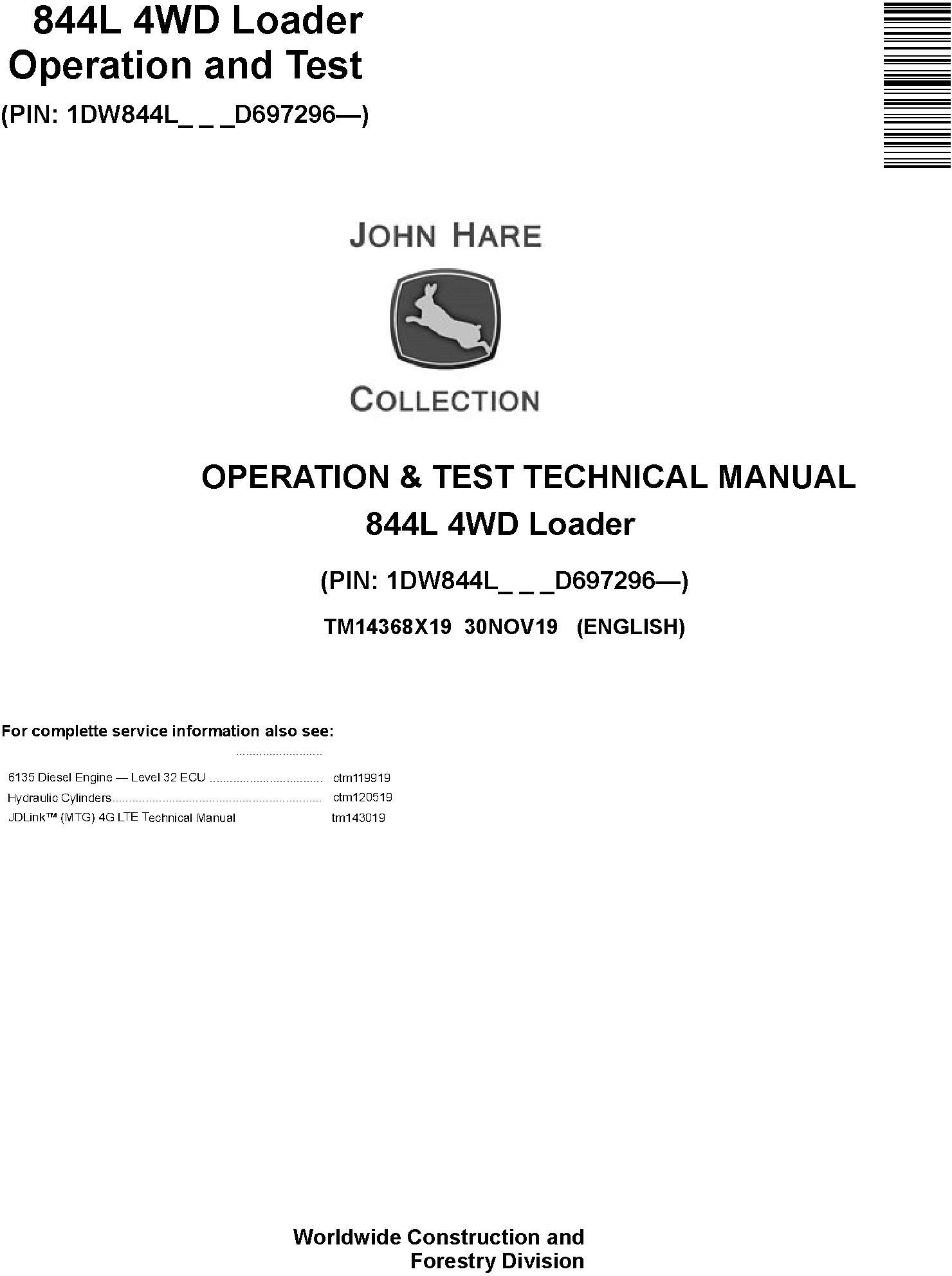 John Deere 844L 4WD Loader Operation Test Technical Manual TM14368X19