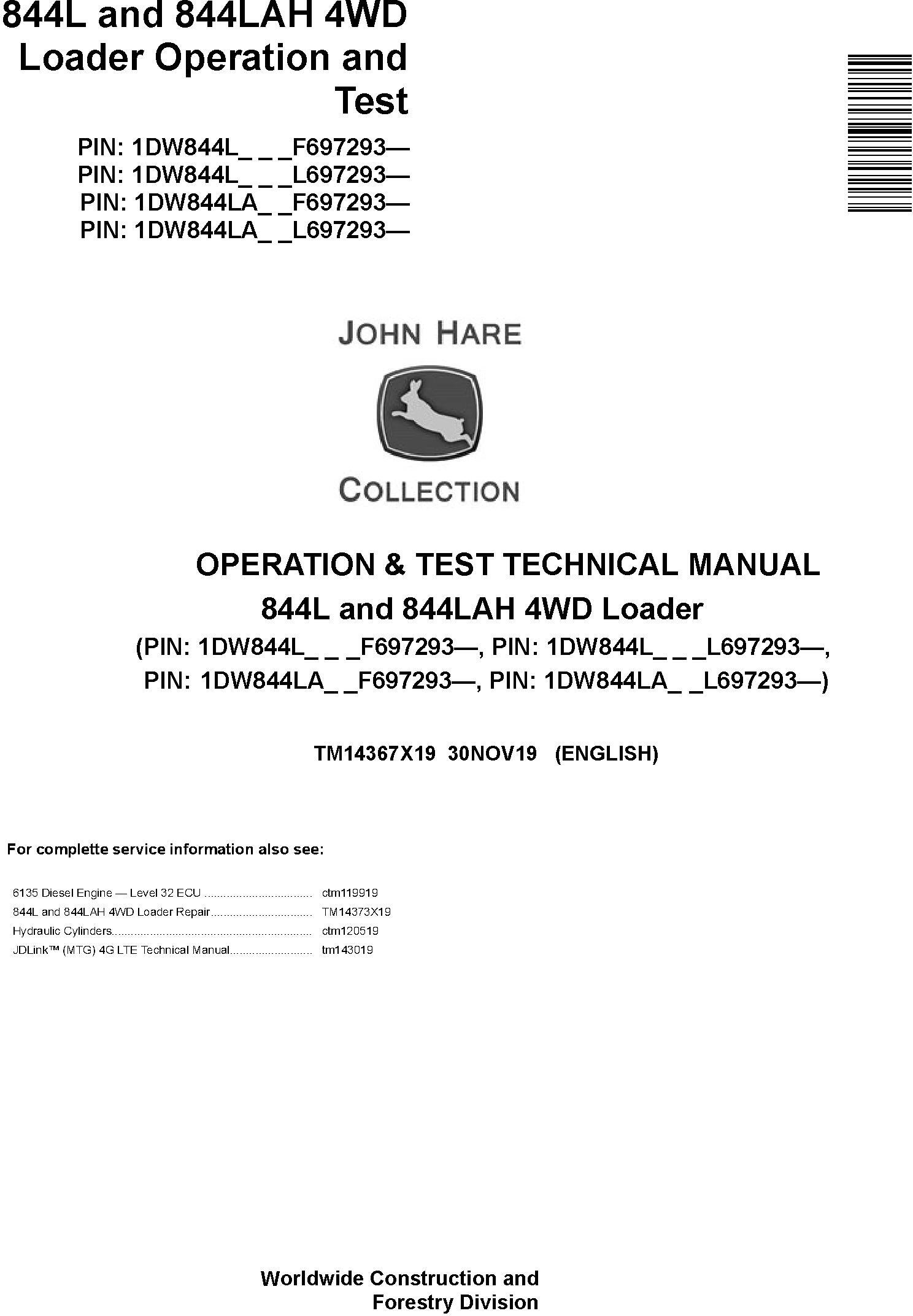 John Deere 844L 844LAH 4WD Loader Operation Test Technical Manual TM14367X19