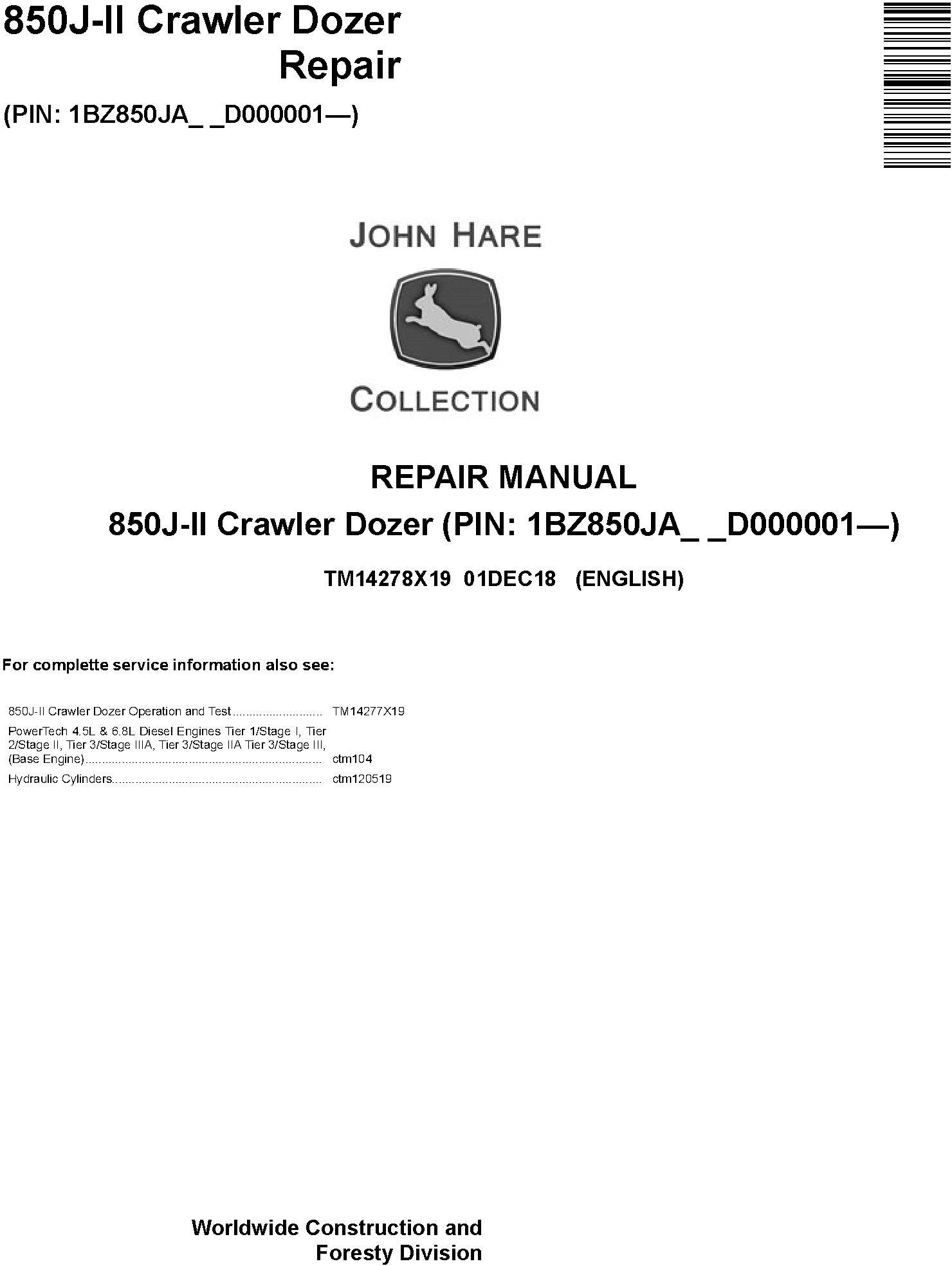 John Deere 850J-II Crawler Dozer Repair Manual TM14278X19