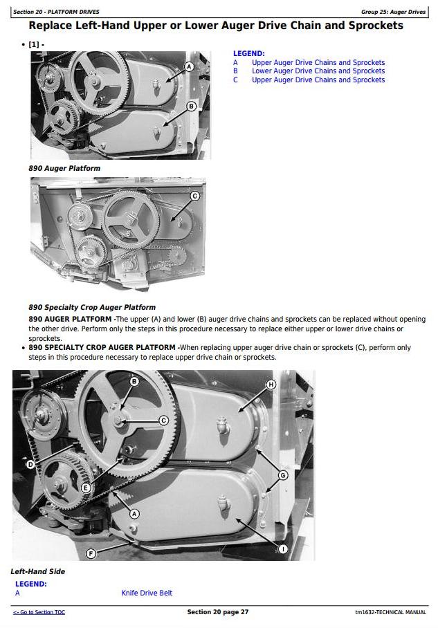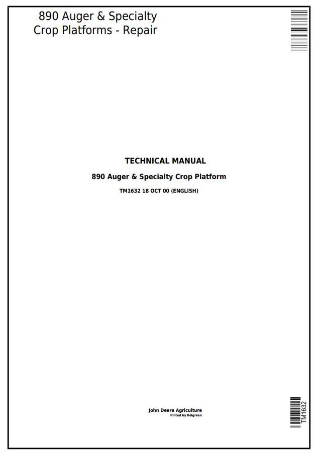 John Deere 890 Auger Specialty Crop Platform Repair Technical Manual TM1632