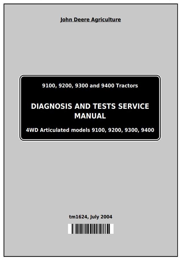 John Deere 9100 9200 9300 9400 4WD Tractor Diagnosis Test Service Manual TM1624