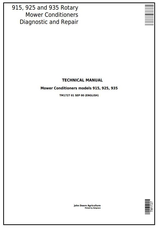 John Deere 915 925 935 Rotary Mower Conditioner Technical Manual TM1727