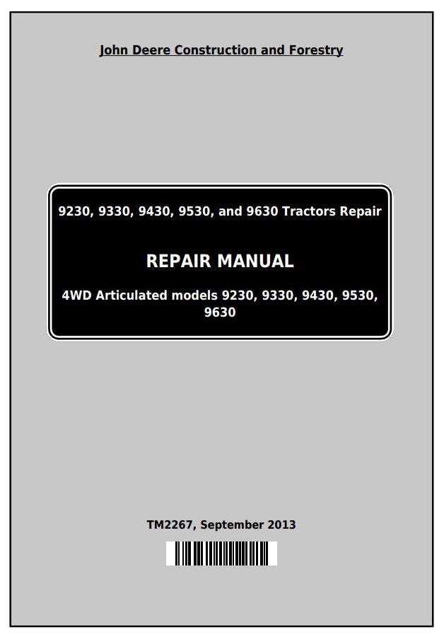 John Deere 9230 9330 9430 9530 9630 4WD Articulated Tractor Repair Manual TM2267