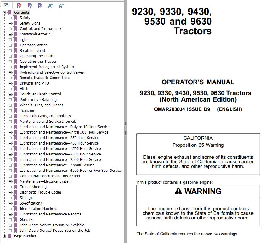 John Deere 9230 9330 9430 9530 9630 Operator's Manual