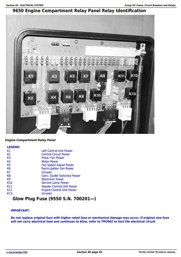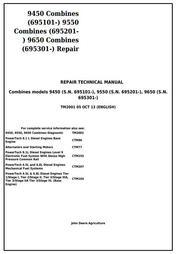 John Deere 9450 9550 9650 Combine Repair Technical Manual TM2001