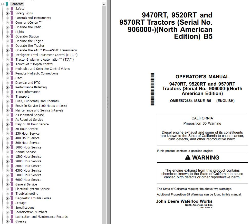 John Deere 9470RT 9520RT 9570RT Operator's Manual OMRE572654 (530 Pages)