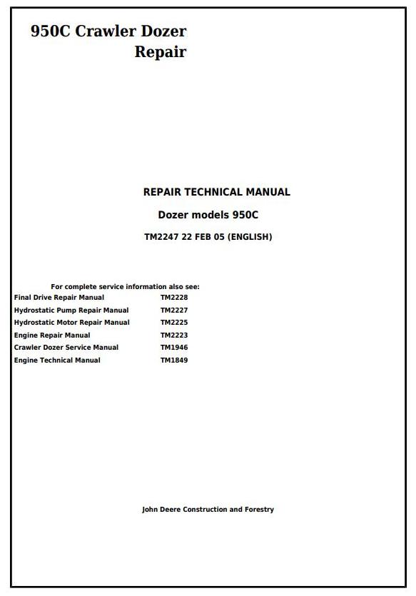 John Deere 950C Crawler Dozer Repair Technical Manual TM2247