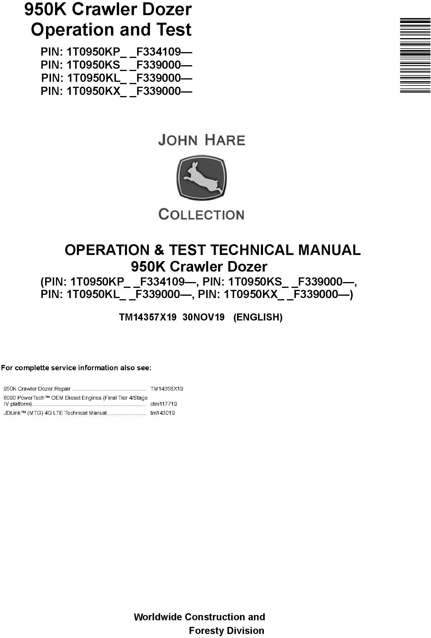 John Deere 950K Crawler Dozer Operation Test Technical Manual TM14357X19