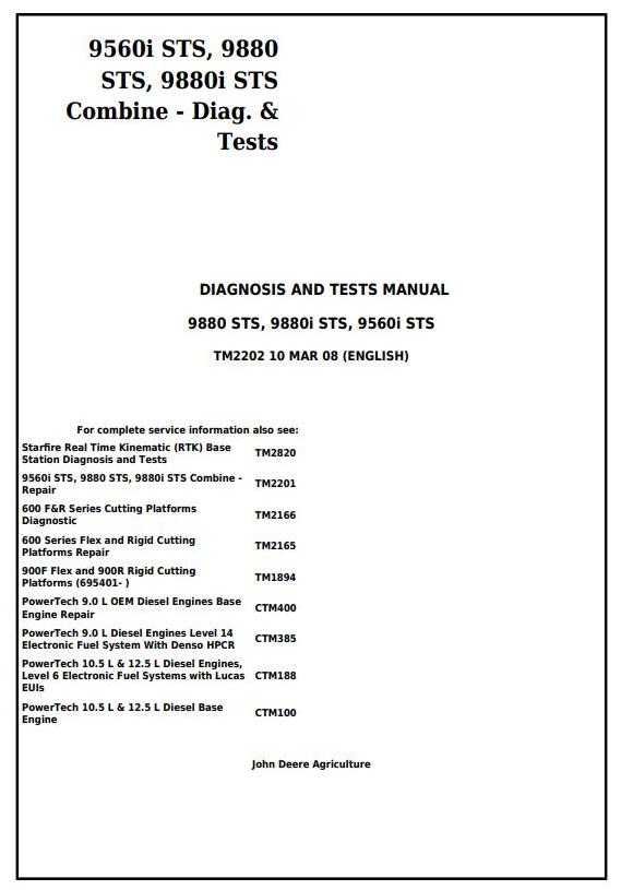 John Deere 9560i 9880 9880i STS Combine Diagnostic Test Manual TM2202