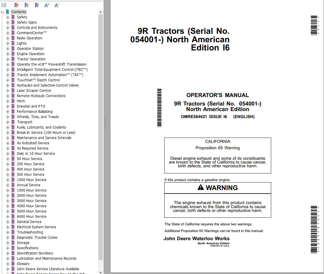 John Deere 9R Tractor Operator's Manual OMTR118780 (420 Pages)