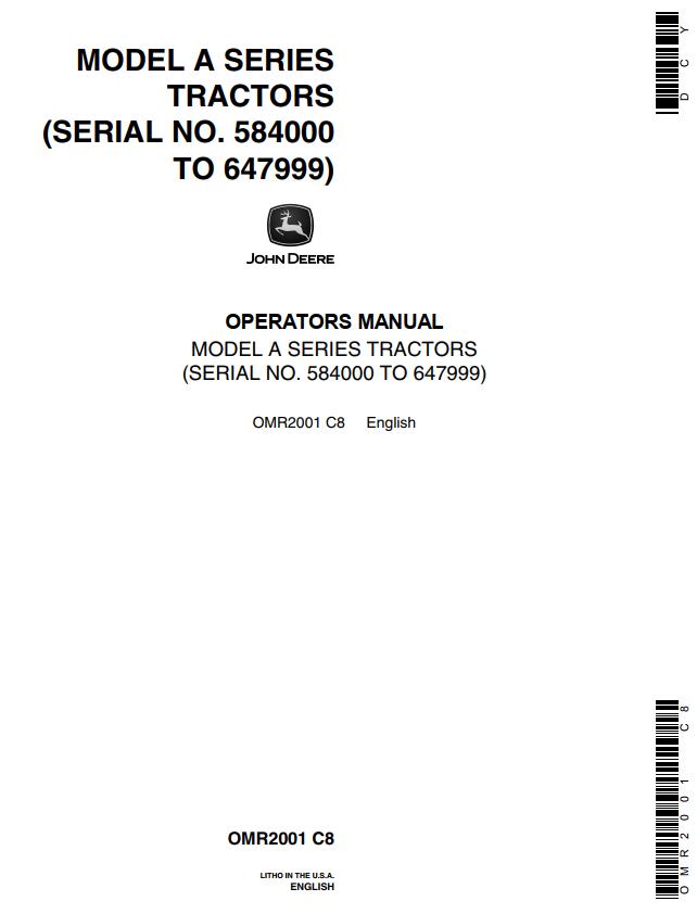 John Deere A Series Operators Manual OMR2001 (76 Pages)
