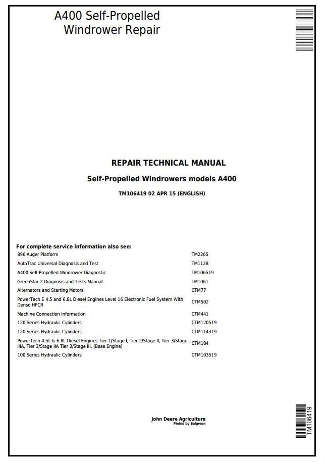 John Deere A400 Self-Propelled Windrower Repair Technical Manual TM106419