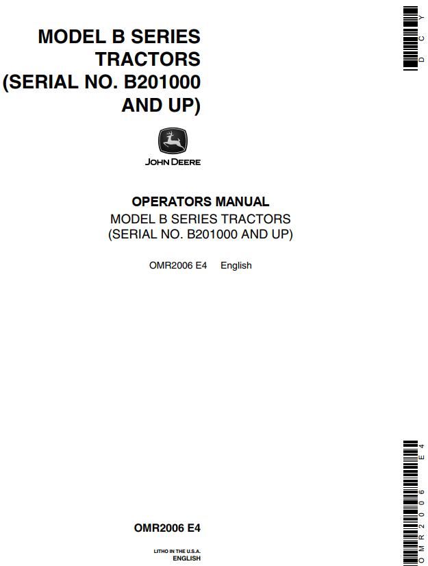 John Deere B Series Operators Manual OMR2006 (76 Pages)