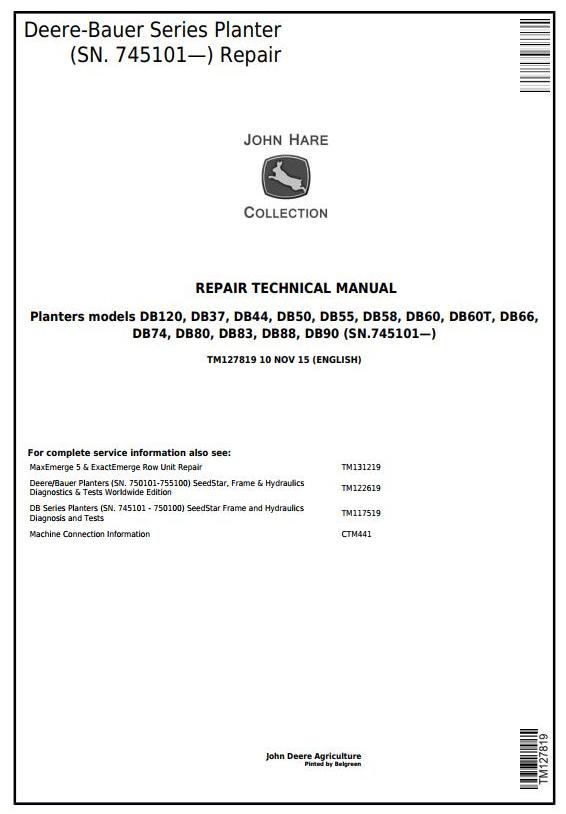 John Deere Bauer DB Series Planter Repair Technical Manual TM127819