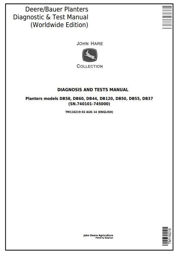John Deere Bauer DB37 DB44 DB50 DB55 DB58 DB60 DB120 Planter Diagnosis Test Manual TM116219