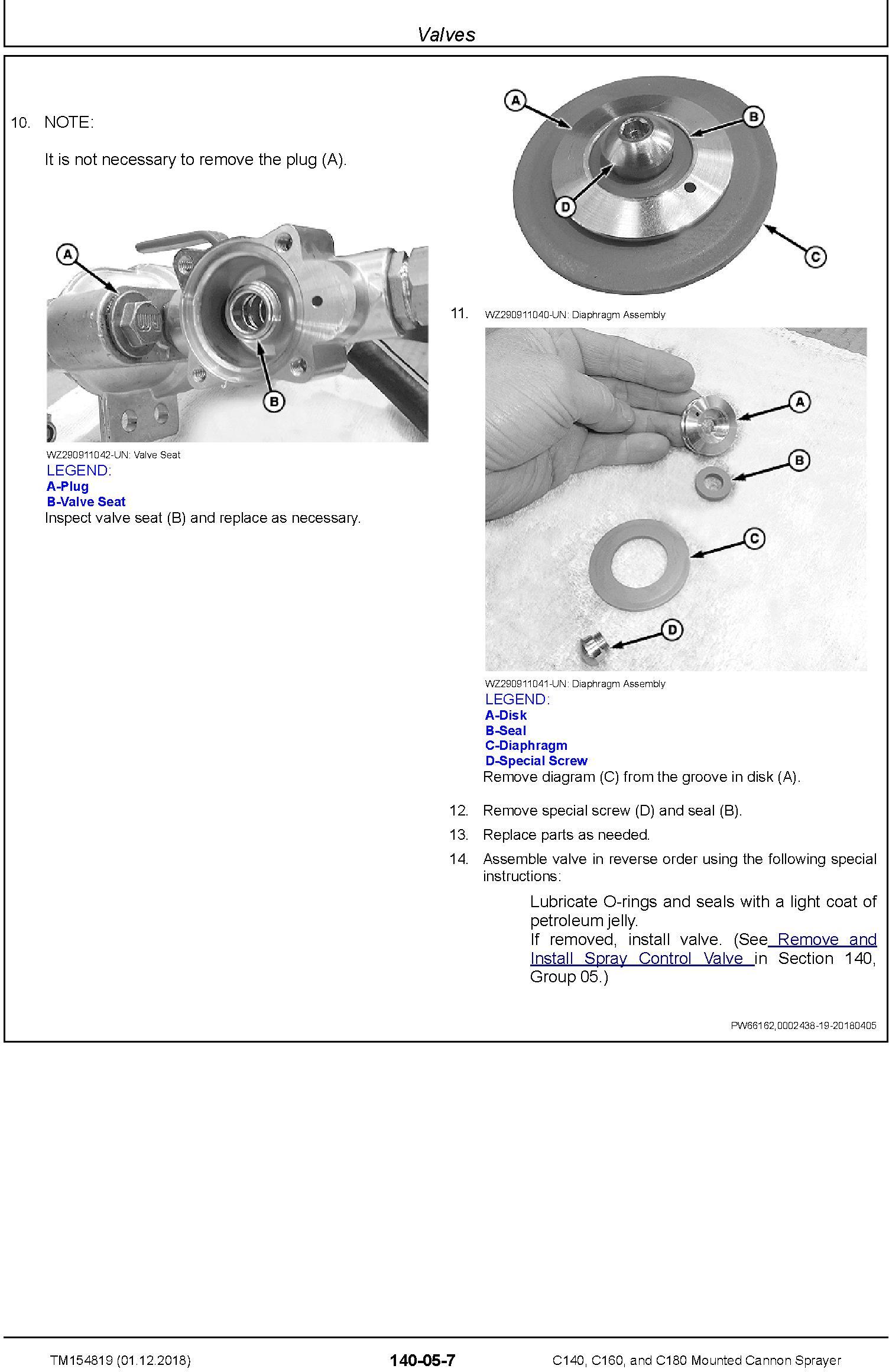 John Deere C140 C160 C180 Mounted Cannon Sprayer Technical Manual TM154819