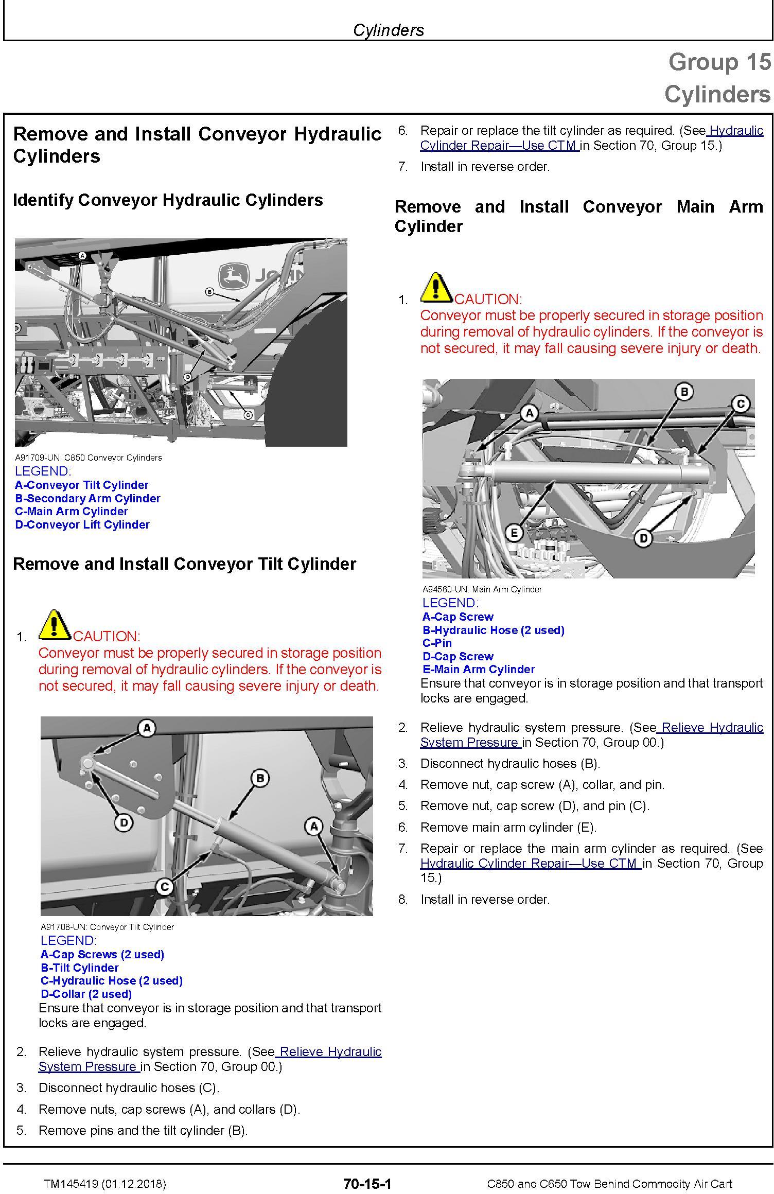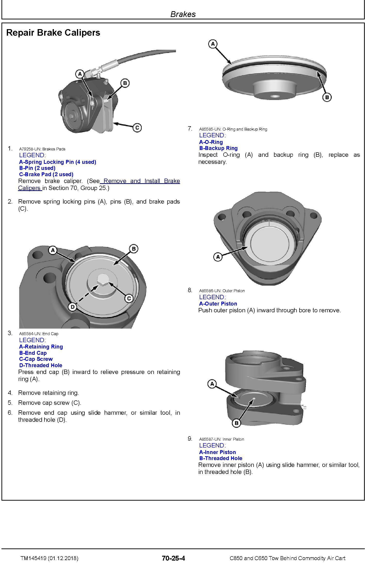 John Deere C850 C650 Tow Behind Commodity Air Cart Repair Technical Manual TM145419