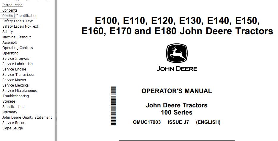 John Deere E100 to E180 Operator's Manual OMUC17903 (64 Pages)