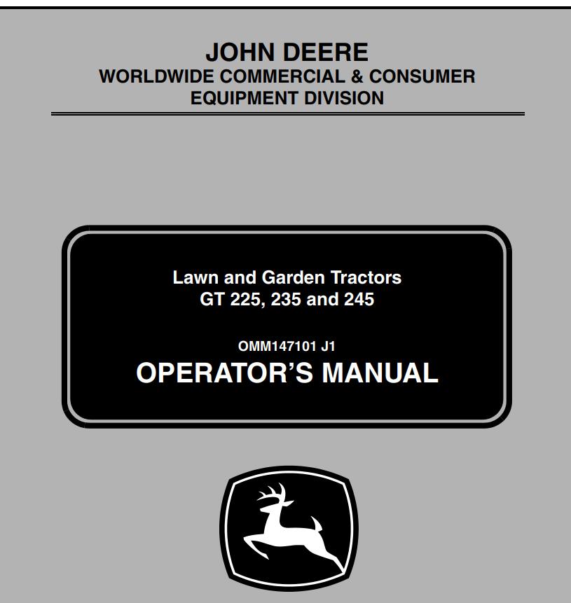 John Deere GT225 GT235 GT245 Operator's Manual OMM147101 (72 Pages)