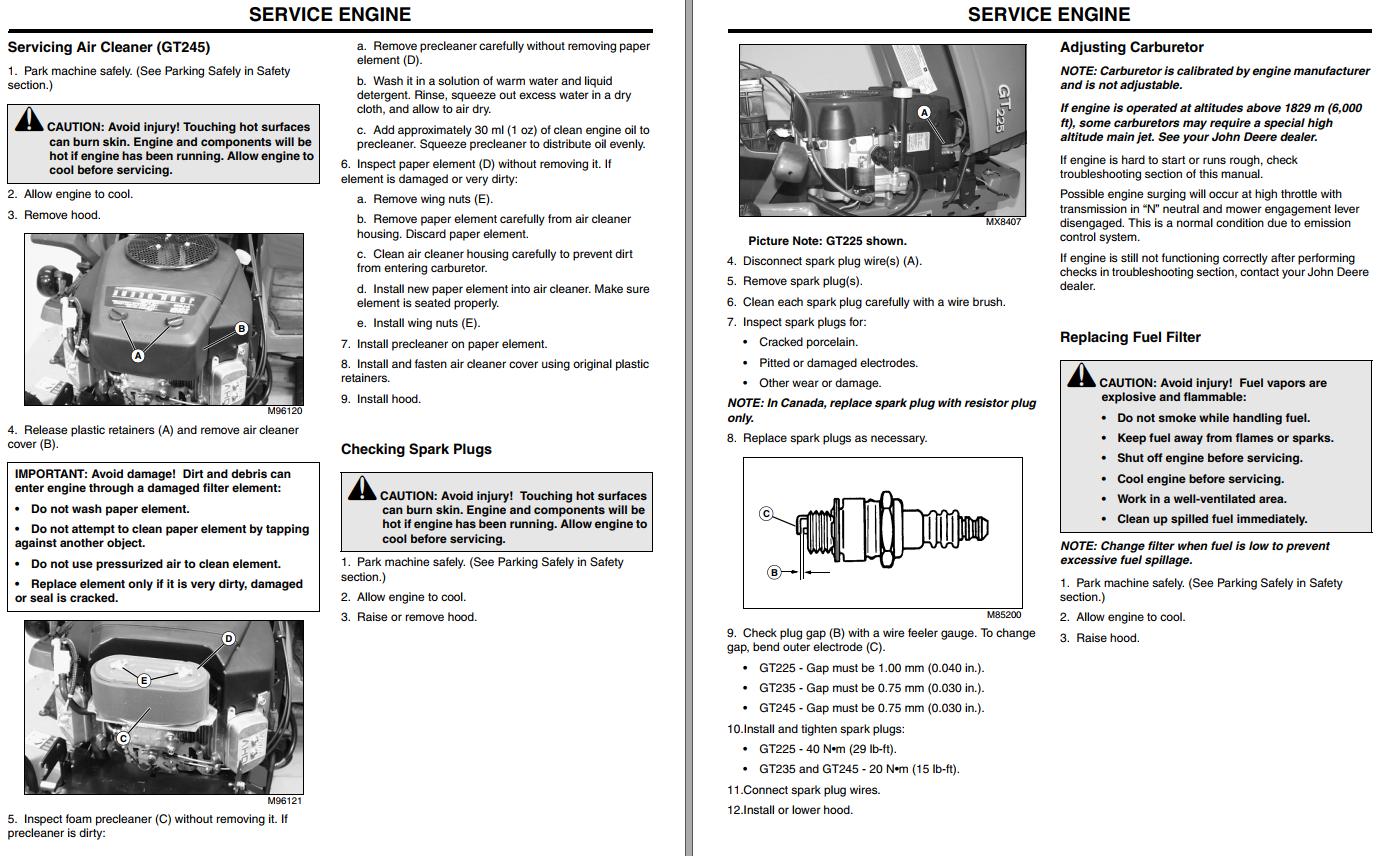 John Deere GT225 GT235 GT245 Operator's Manual OMM148971 (72 Pages)
