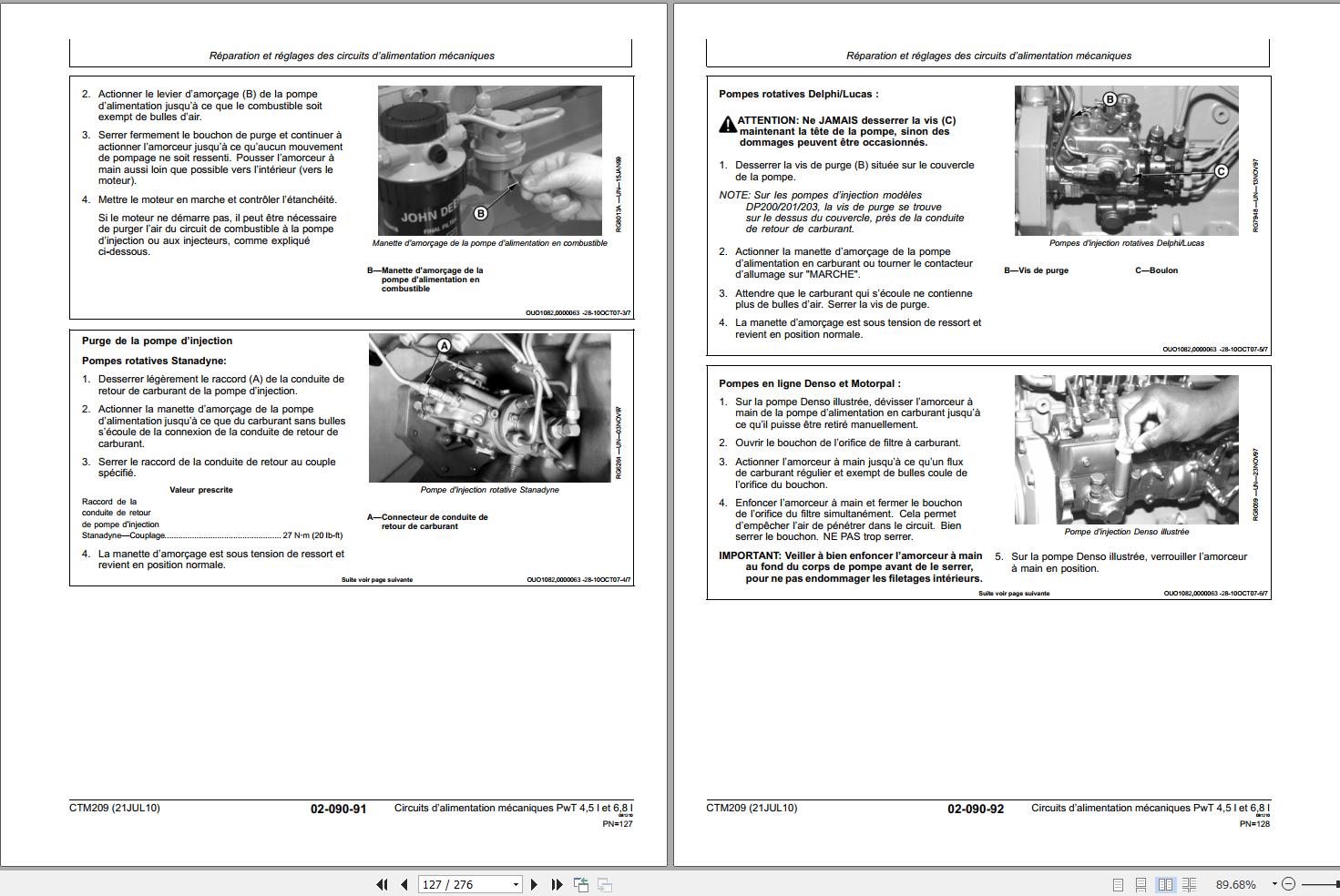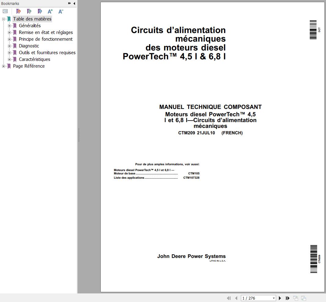 John Deere PowerTeach 4.5L 6.8L Mechanical Fuel Systems-Technical Manual CTM209 2010 FR