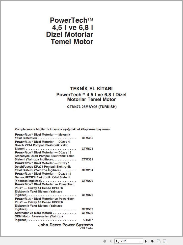 John Deere PowerTeach 4.5L 6.8L Technical Manual CTM473 2006 TR