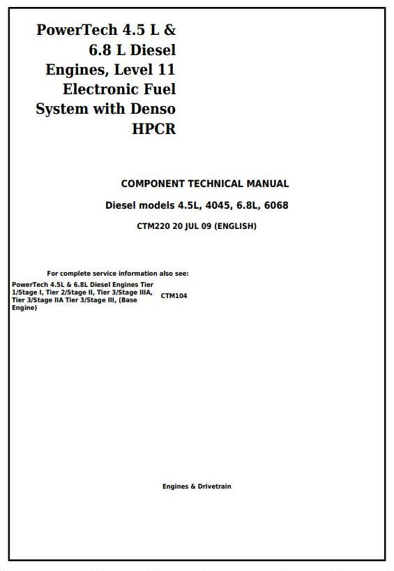 John Deere PowerTech 4.5L 6.8L Diesel Engine Component Technical Manual CTM220