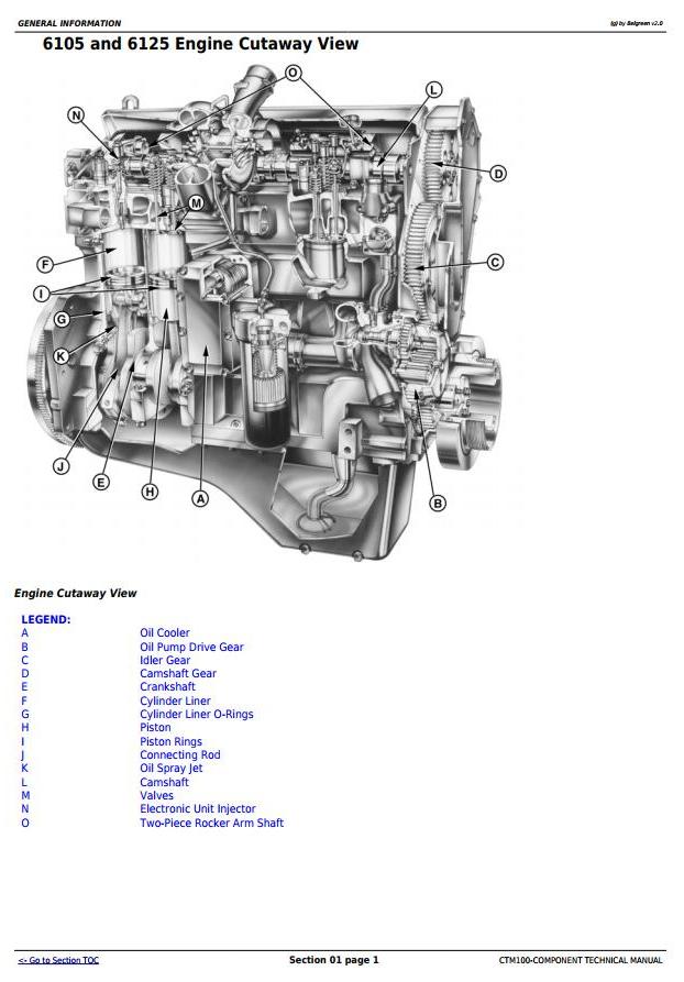 John Deere PowerTech 6105 10.5L 6125 12.5L Diesel Base Engine Component Technical Manual CTM100