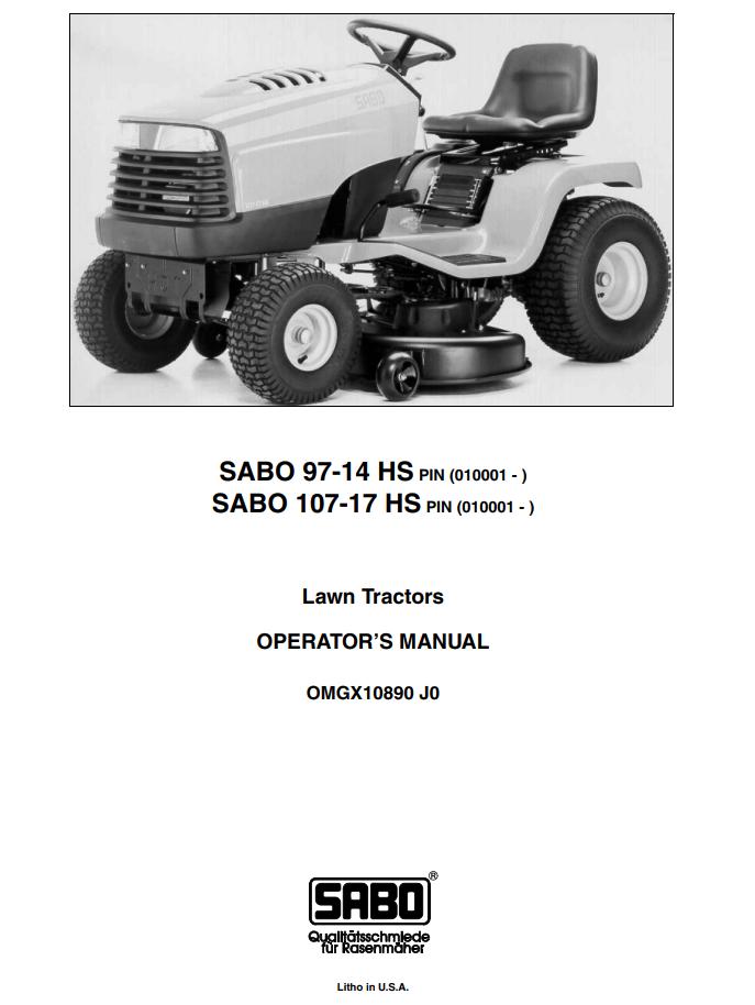 John Deere SABO97-14HS SABO107-17HS Operator's Manual OMGX10890
