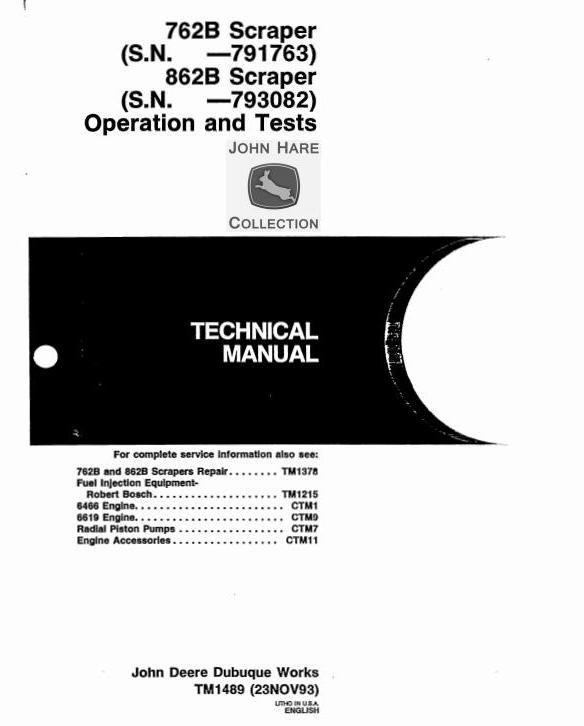 John Deere Scrapers 762B 862B Operation Test Manual TM1489