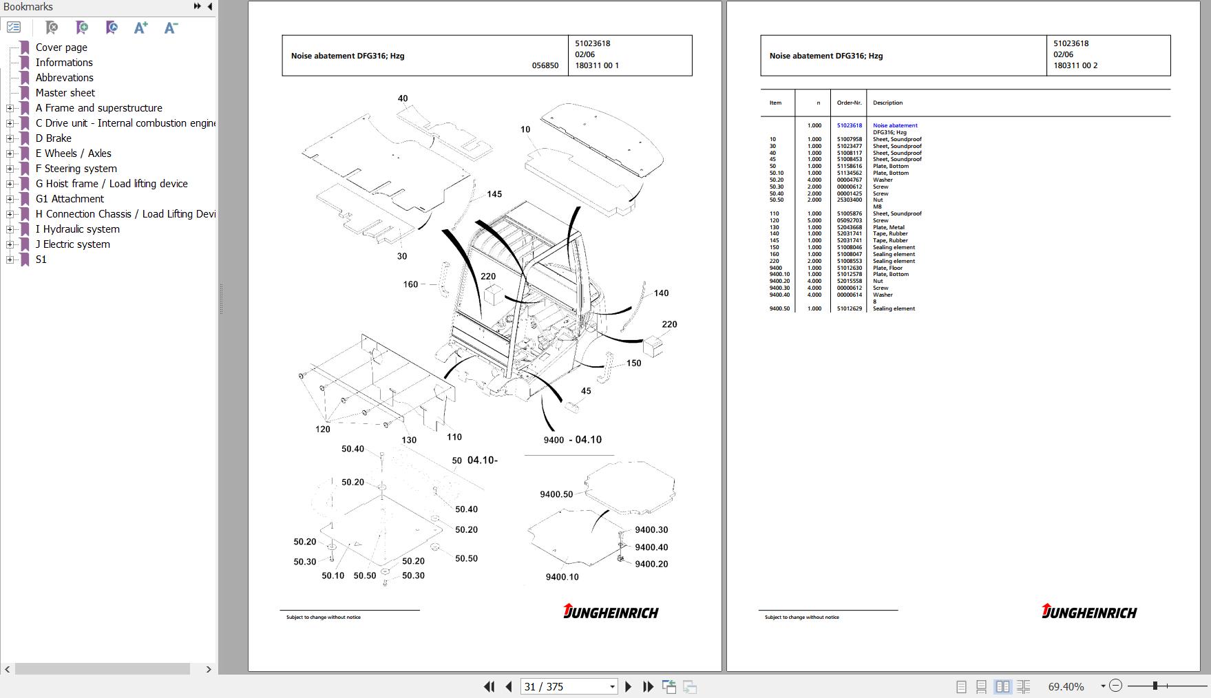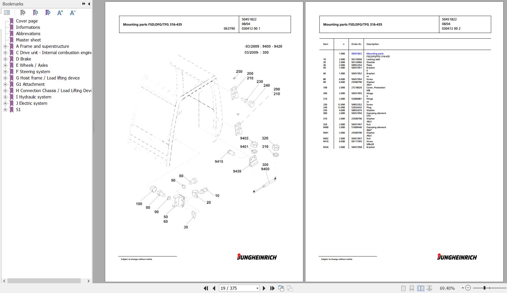 Jungheinrich DFG 316 GE115-380ZT Spare Parts Manual FN427073