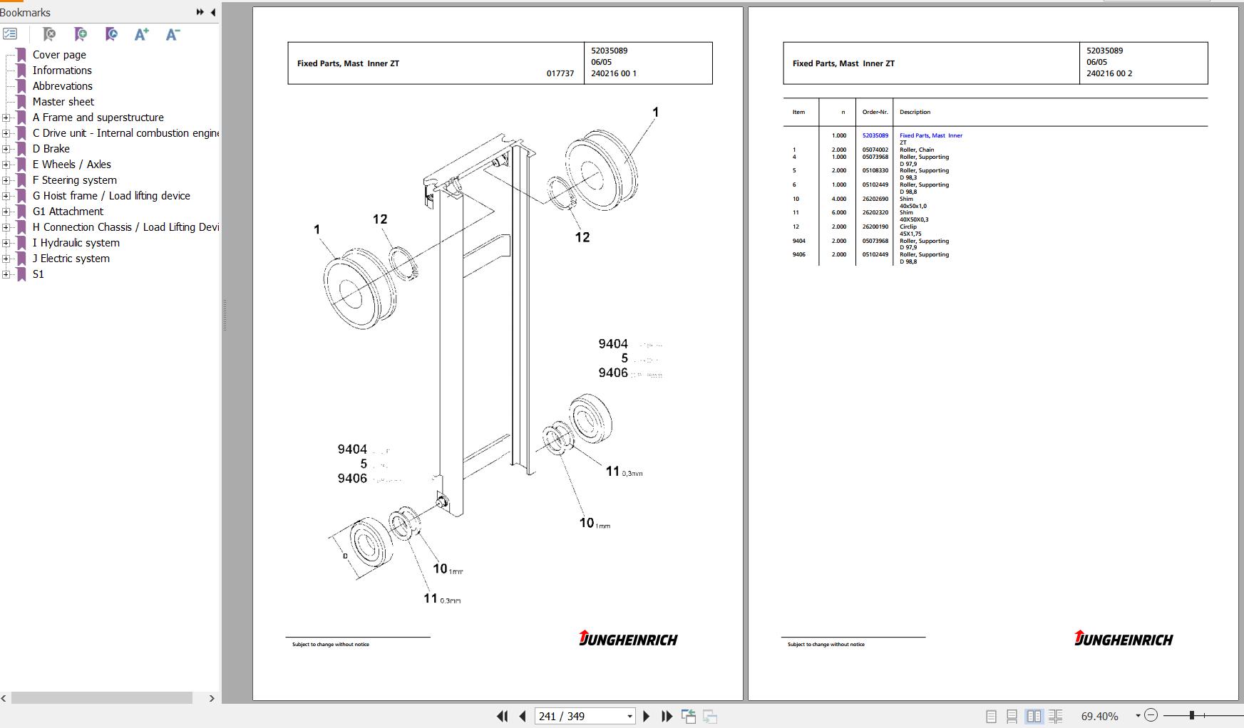 Jungheinrich DFG 425 G120-400ZT Spare Parts Manual FN427080