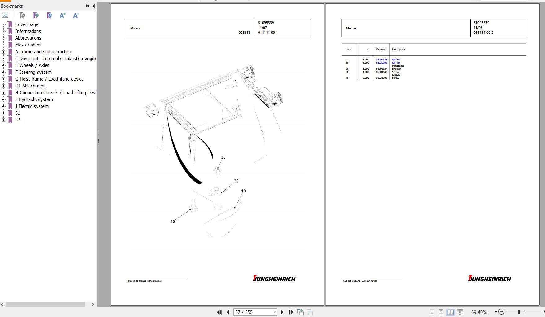 Jungheinrich DFG 425s G-440DZ Spare Parts Manual FN427310