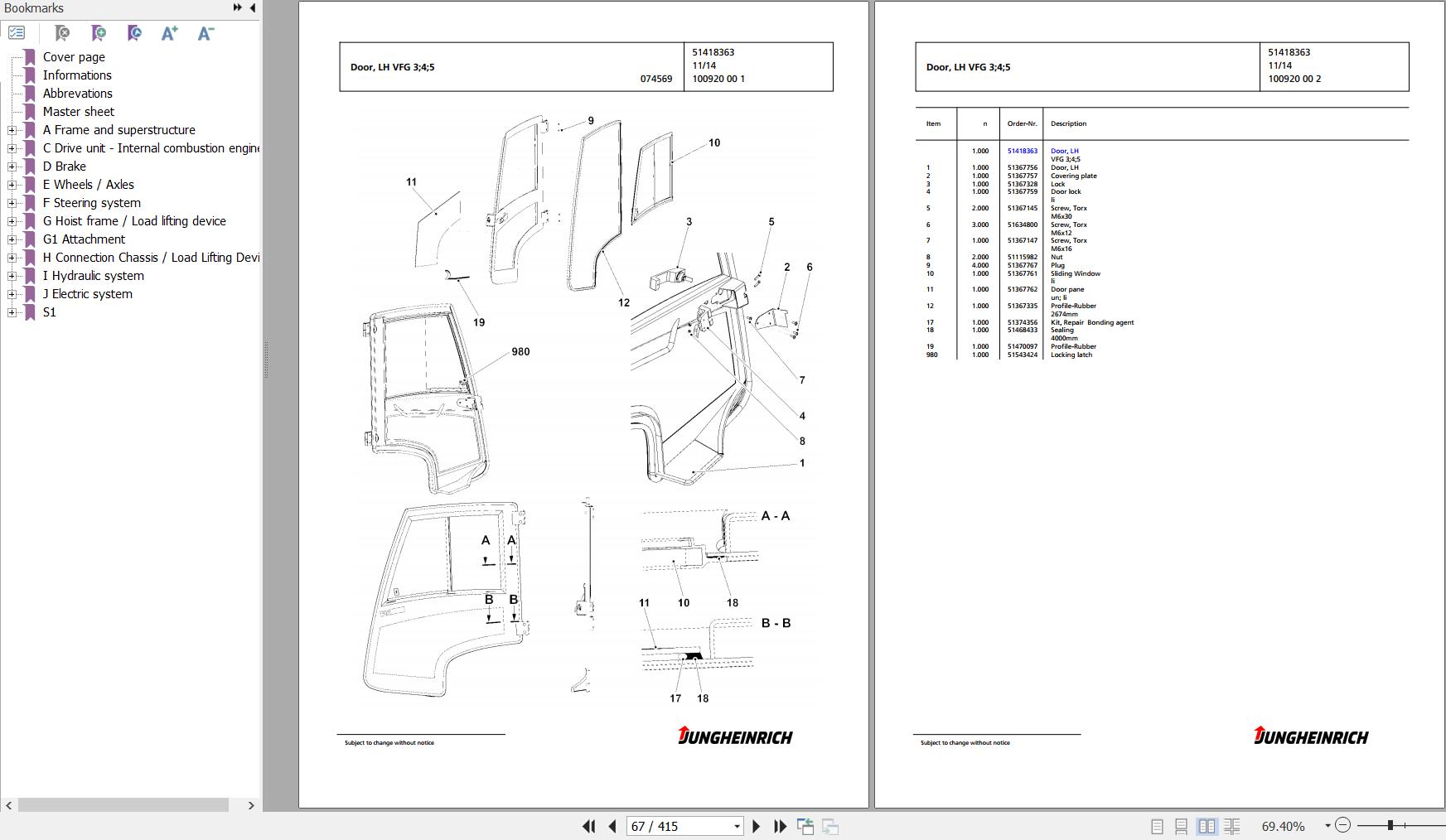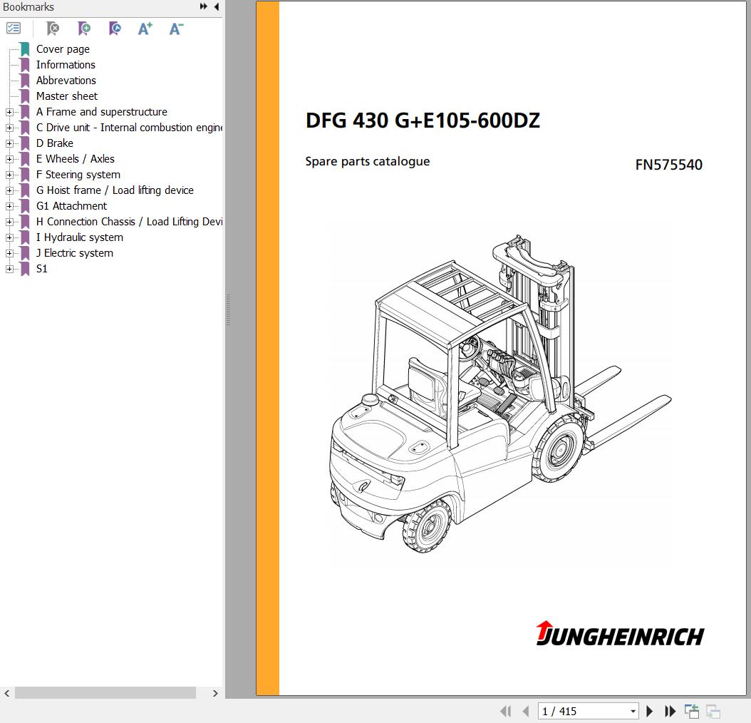 Jungheinrich DFG 430 G+E105-600DZ Spare Parts Manual FN575540