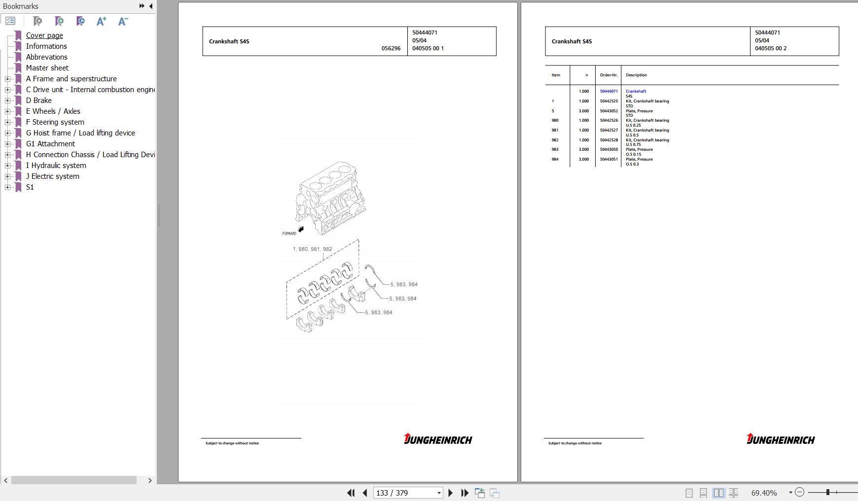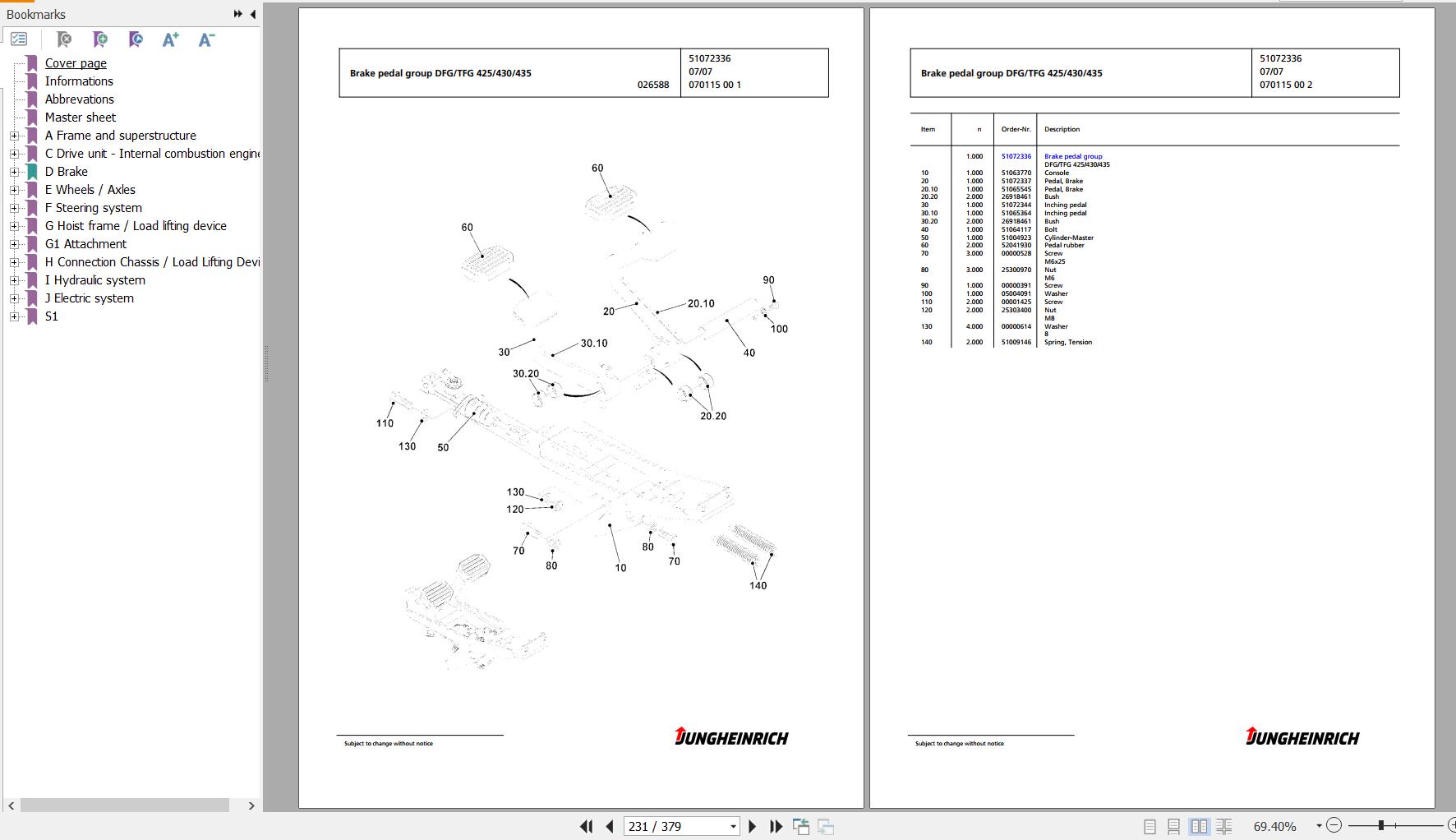 Jungheinrich DFG 430 GE115-500DZ Spare Parts Manual FN427318